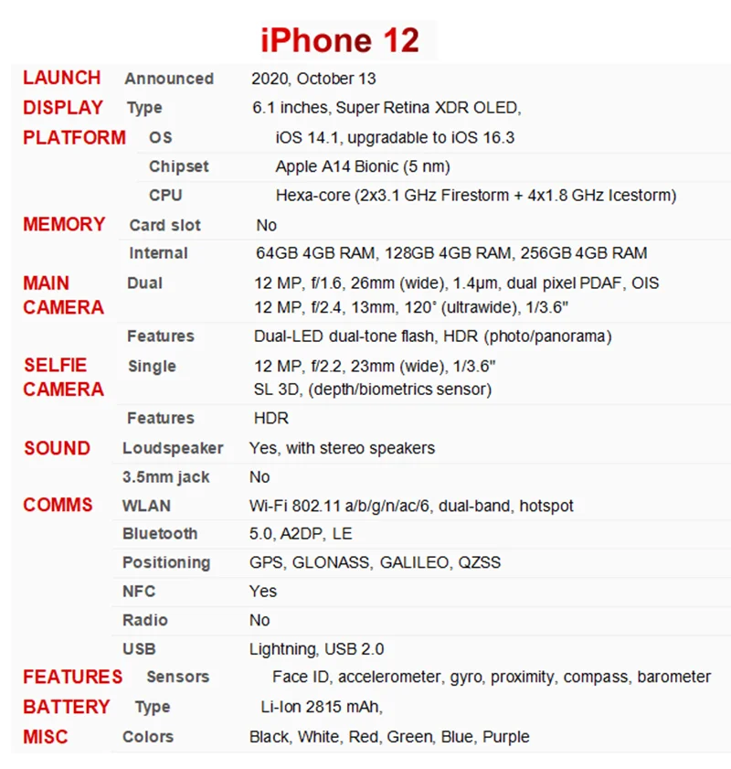 « Norme iPhone 12 :signifie que vous obtiendrez l’iPhone 12 + câble USB + boîte ;