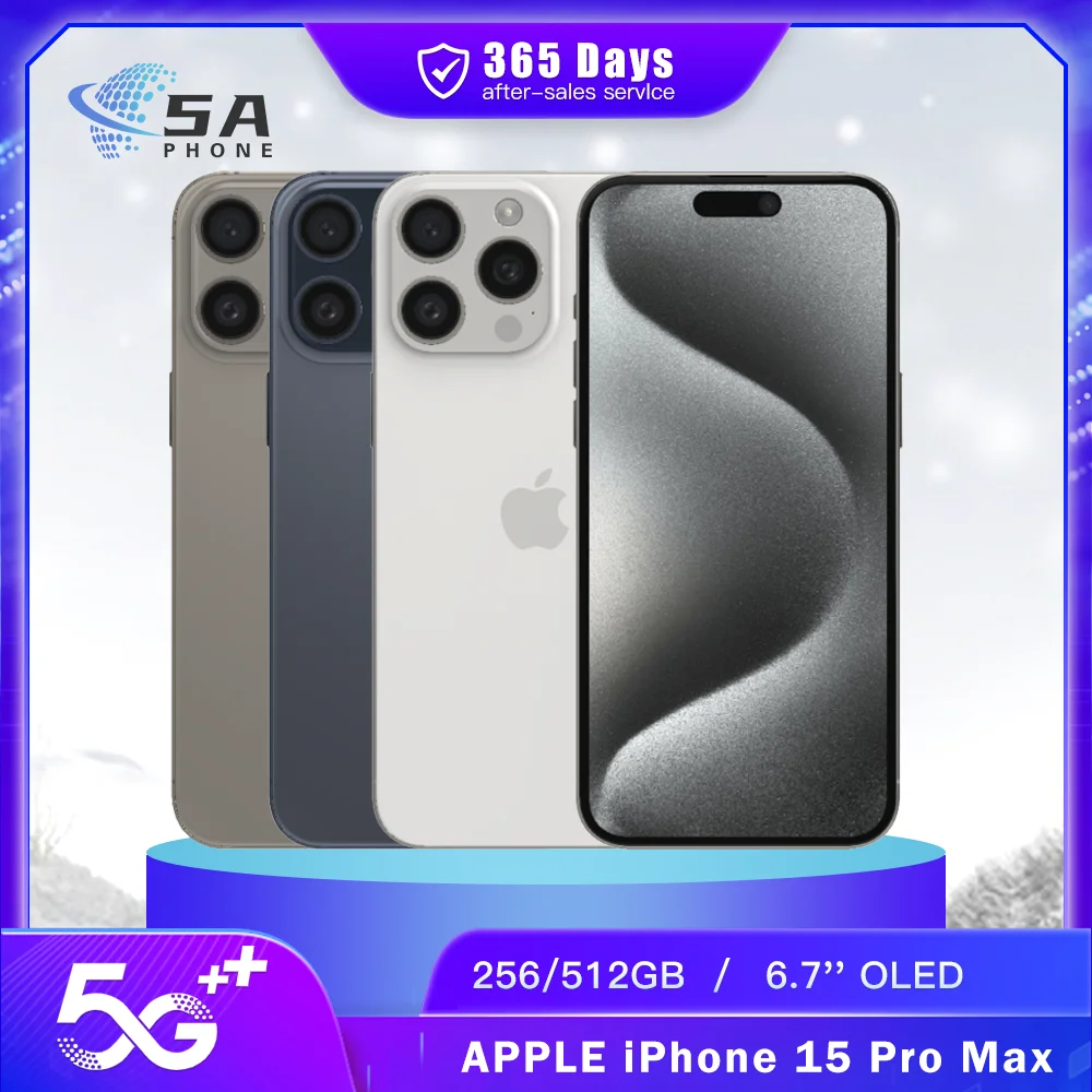 Apple-Smartphone iPhone 15 Pro Max 5G d'occasion, téléphone portable, Face ID, 256 Go, 512 Go, touristes, e-epiNDavid, 48MP + 12MP, 120Hz, IOS, A17 Pro, original