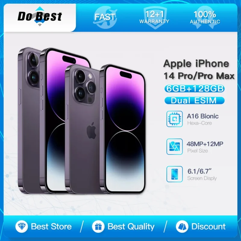 Apple-Téléphone portable iPhone 14 Pro Max 5G, 6.1 ", 6.7", OLED, 120Hz, A16 Bionic, Hexa-Core, US.Ver Tourists, ESIM, Téléphone portable IOS, Original