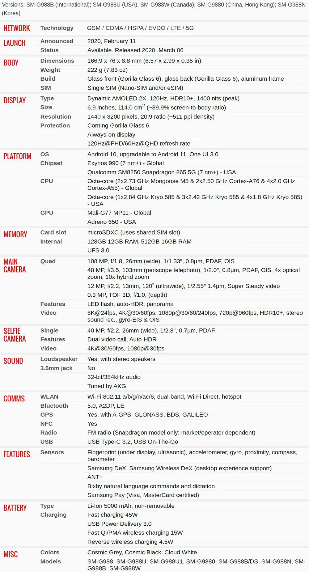 G988U1, snapdragon 865, prend en charge 1 SIM, il ne prend en charge que ces langues: Deutsch, anglais, espagnol, français, italien, portugais, chinois, coréen. Vietnamien. d’autres langues telles que le russe, le polonais, l’hébreu, l’arabe, etc. juste un support partiel dans ce téléphone, même si vous réglez vos lanaguages correctement. Il vous montrera environ 50% menus en anglais (peut-être plus de 50%, cela dépend de différentes langues)